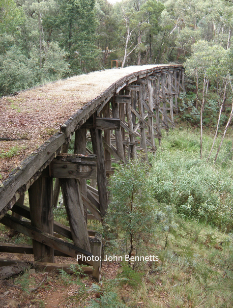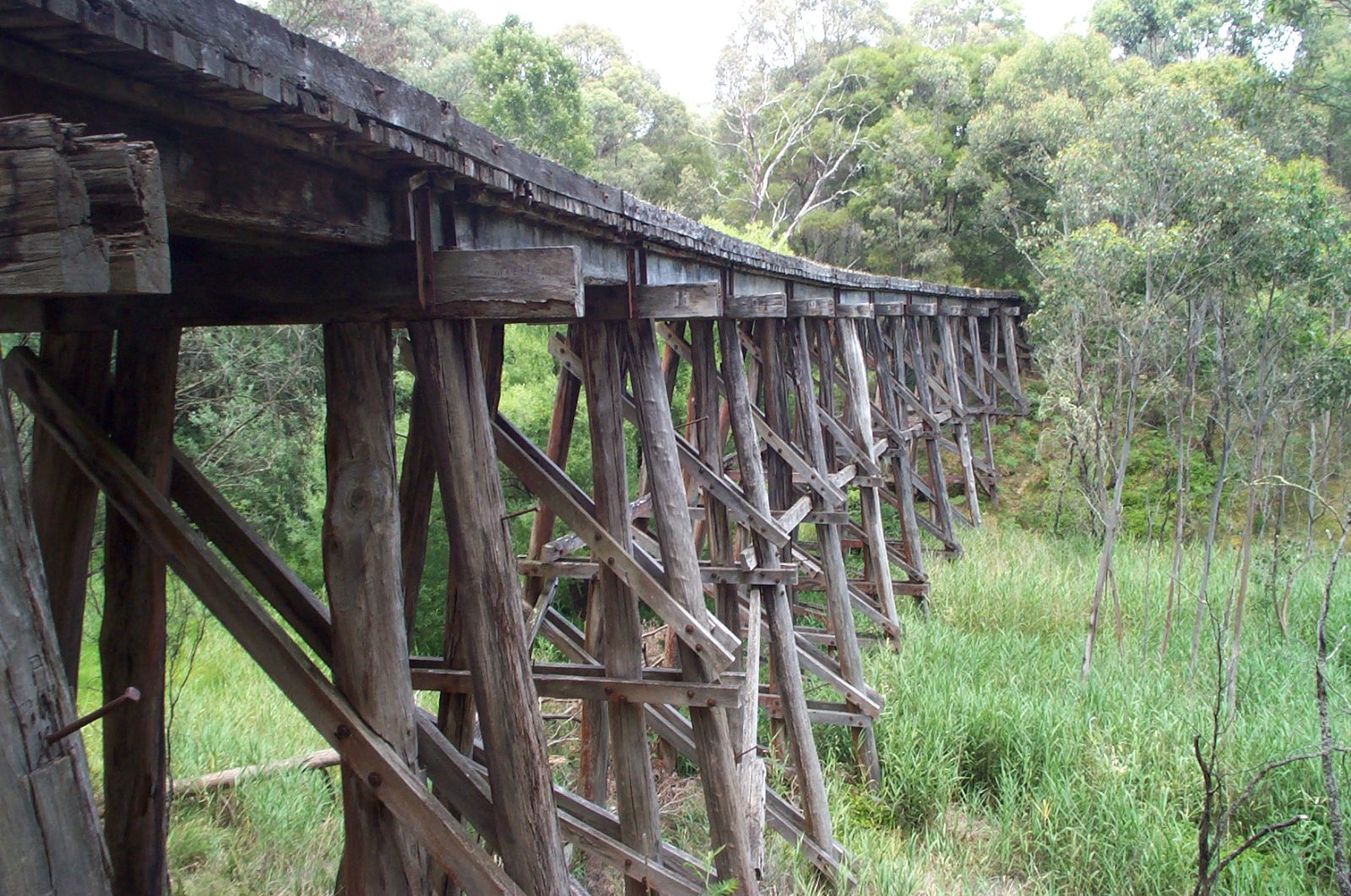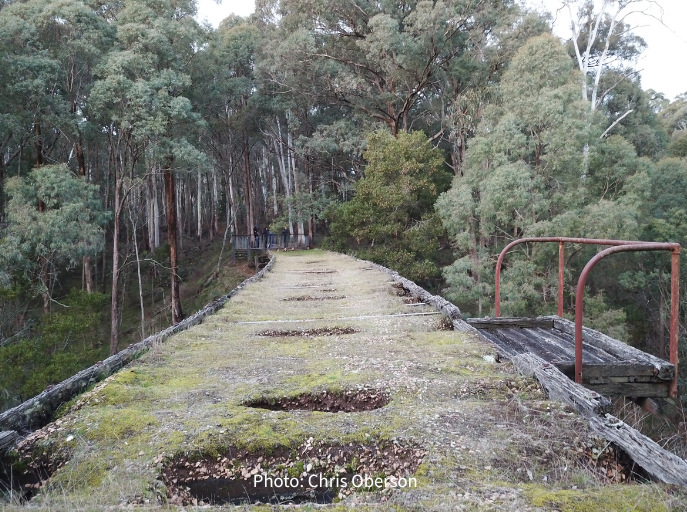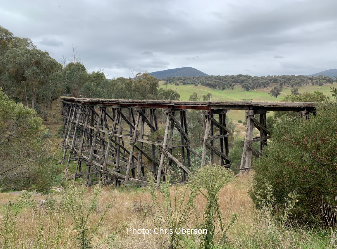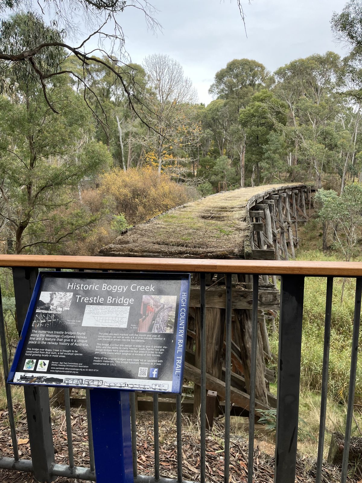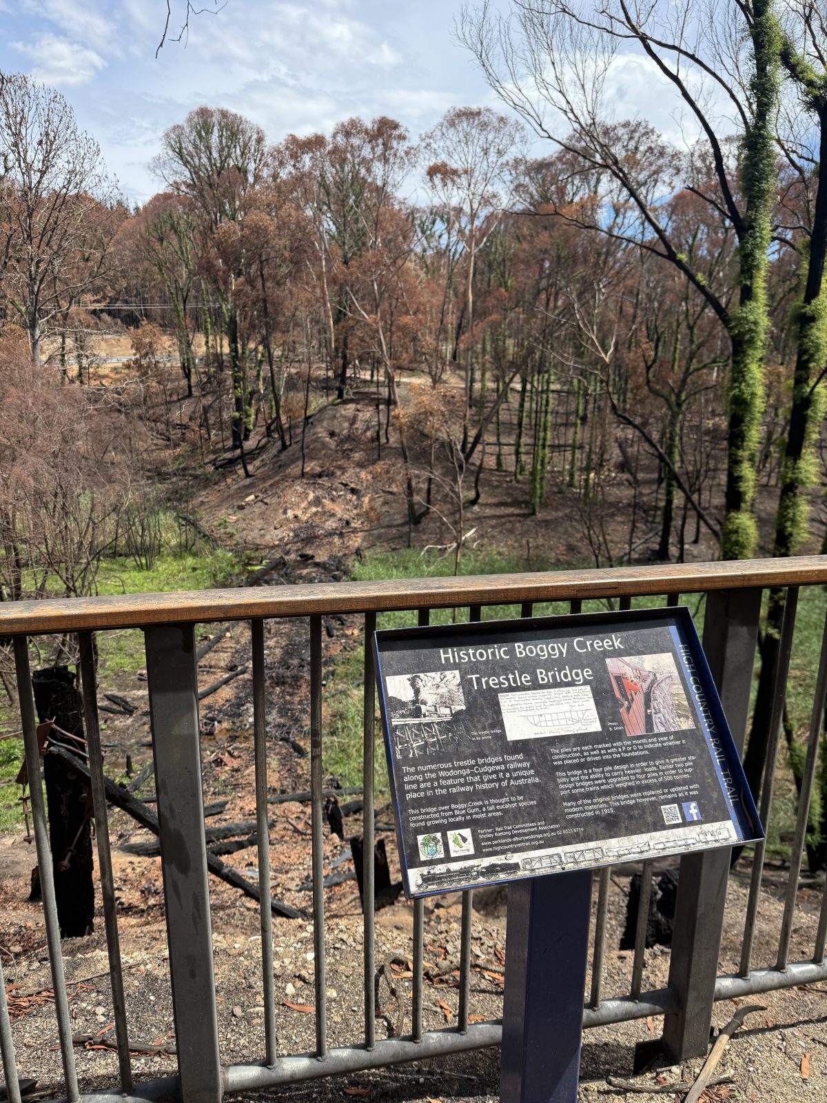 The trestle bridge at Boggy Creek, Koetong was lost in the January 2026 Upper Murray bushfire. It was 76.6 m long and 12.85 m high, consisting of 13 spans. It was an all-timber bridge constructed in 1915 as a four-pile design to support heavier trains and remained as it was originally built.