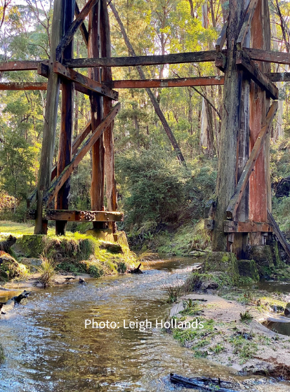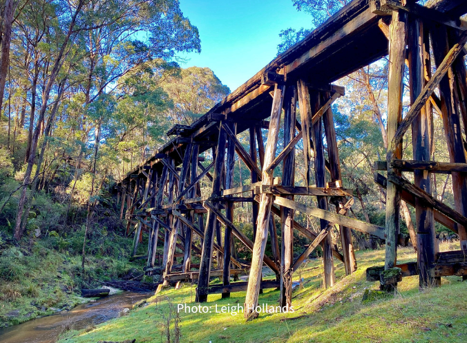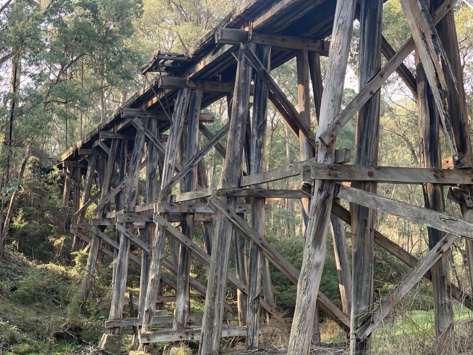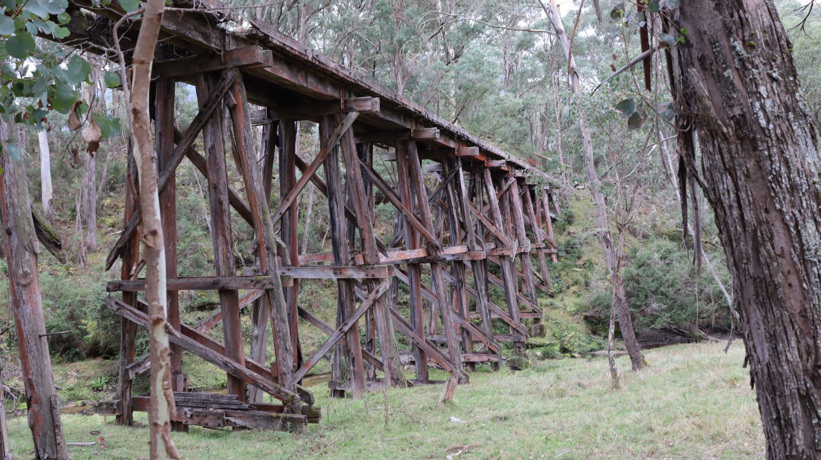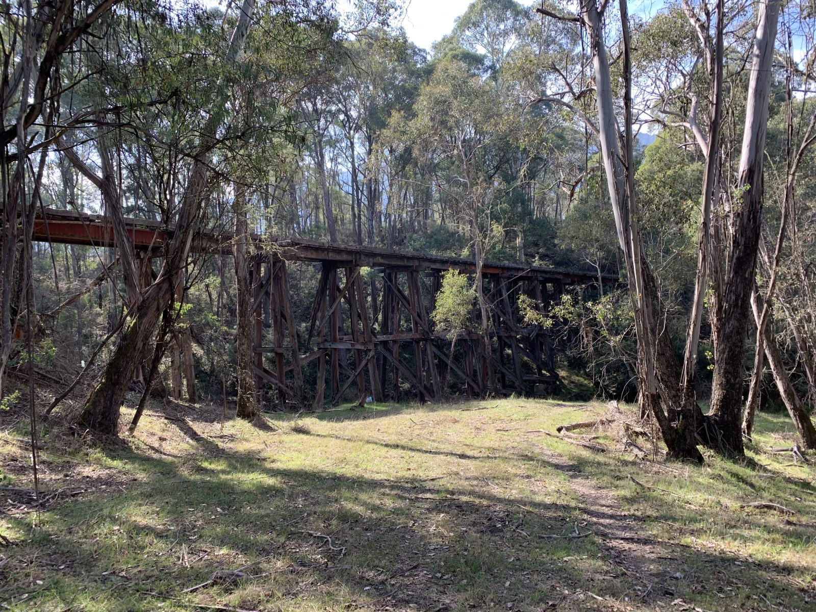 The Boundary Creek West trestle bridge was lost in the January 2026 Upper Murray bushfire. It was 49.7 m long and 10.6 m tall, consisting of nine timber and steel spans.