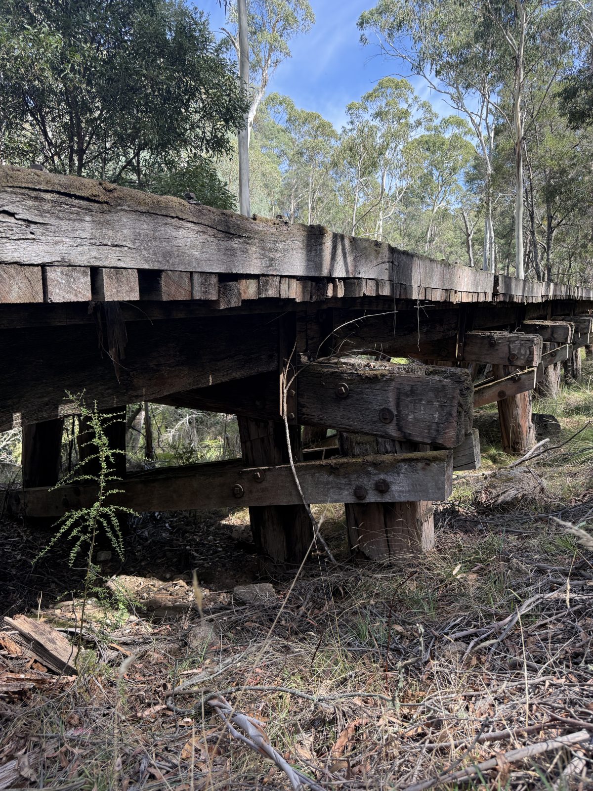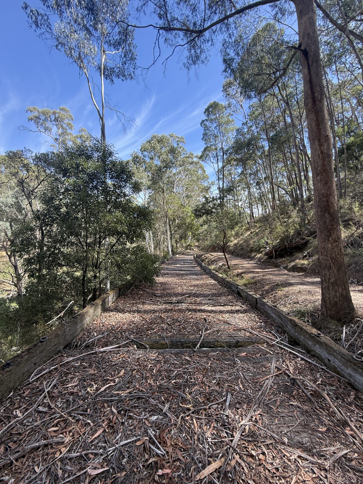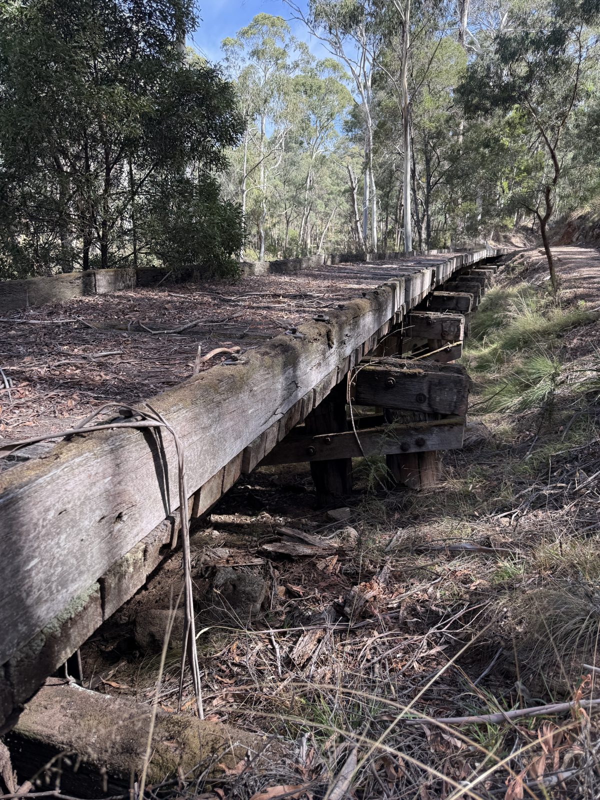 The third bridge at Koetong Creek was lost in the January 2026 Upper Murray bushfire. It was 47.4 m long and 3.5 m tall, consisting of 10 timber spans. The photos below show works to construct the High Country Rail Trail around the bridge.